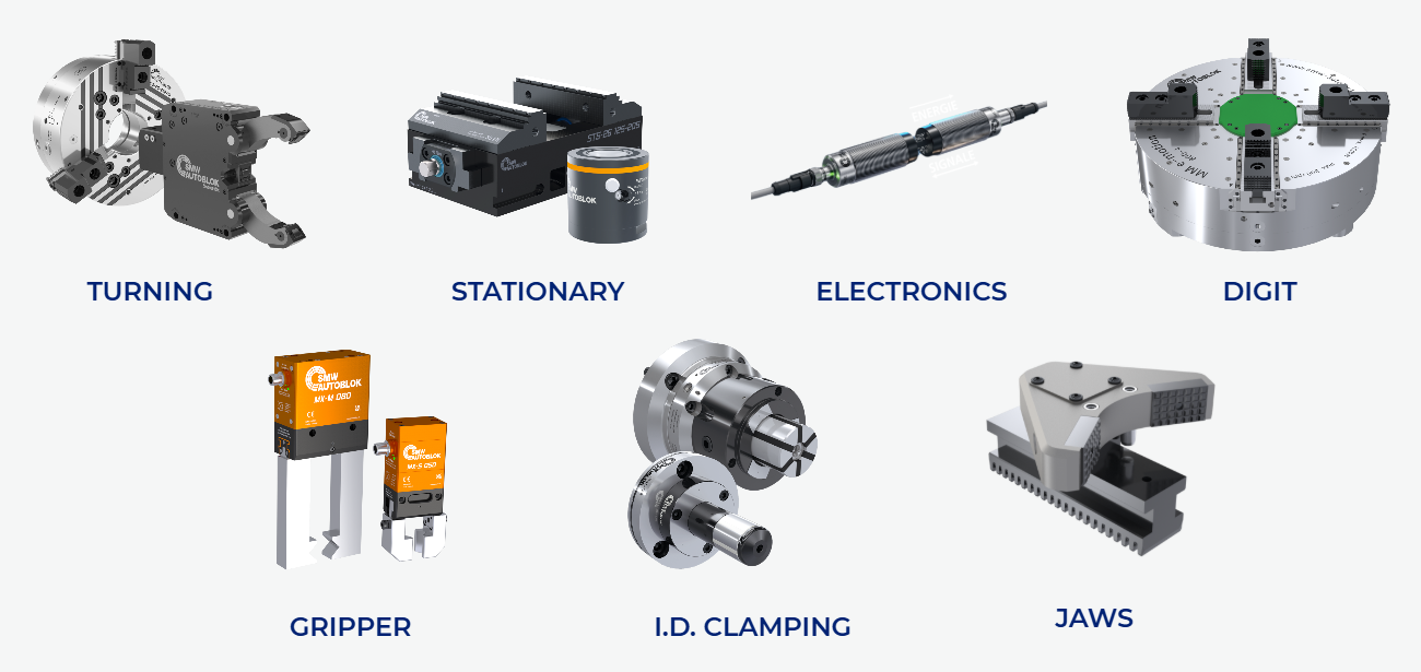 V nabídce této společnosti nechybí silová průchozí i neprůchozí sklíčidla, sklíčidla s rychlovýměnným systémem čelistí, speciální sklíčidla, kleštinové upínače, lunety nebo hydraulické válce. Většina sklíčidel má standardní rozhraní pro vkládání metrických nebo palcových čelistí a tím jsme schopni při výměně sklíčidla zaručit využití již zákazníkem používaných čelisti, kleštin a atd..